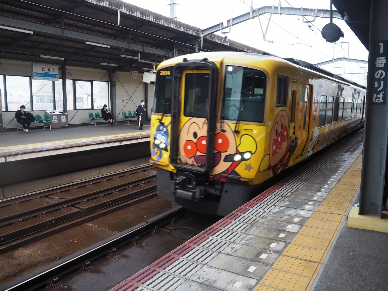 丸亀城の観光後に丸亀駅から高知駅へと向かう土讃線の特急列車にのりましたが、乗った車両がアンパンマン列車でした。2、3日前に松山駅や宇和島駅でアンパンマン列車に乗ったのであまり感動はありませんでしたが、愛媛、香川、高知とアンパンマン列車が走っているのがわかりました。アンパンマンの作者のヤナセ先生は高知出身の方なので、JR四国もアンパンマン押しをしているようです。