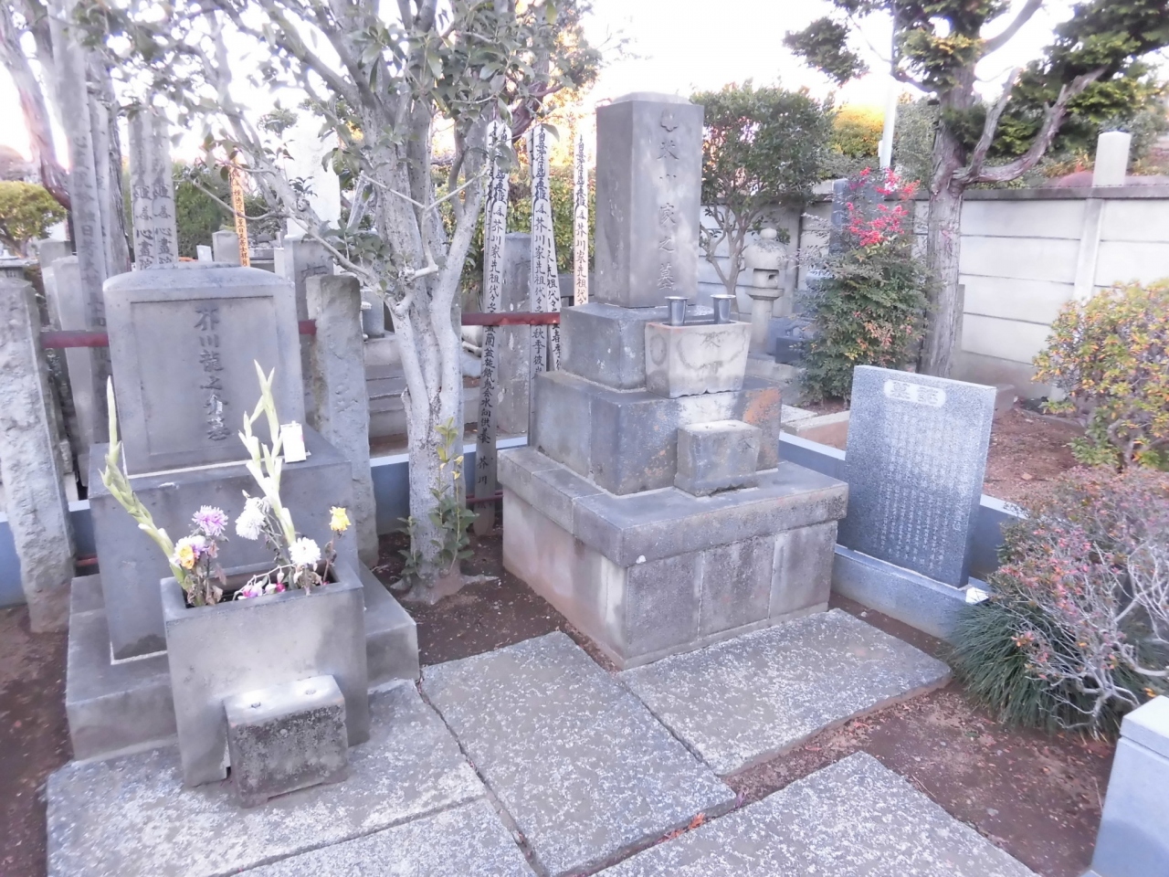 巣鴨周辺を散策中に立ち寄った慈眼寺で、墓地に入ってみたところ芥川龍之介のお墓がありました。戒名はないのかもしれませんが、墓石にもそのまま名前が刻まれていました。有名な小説家がこのお寺に眠っていることを知ってとても驚きました。