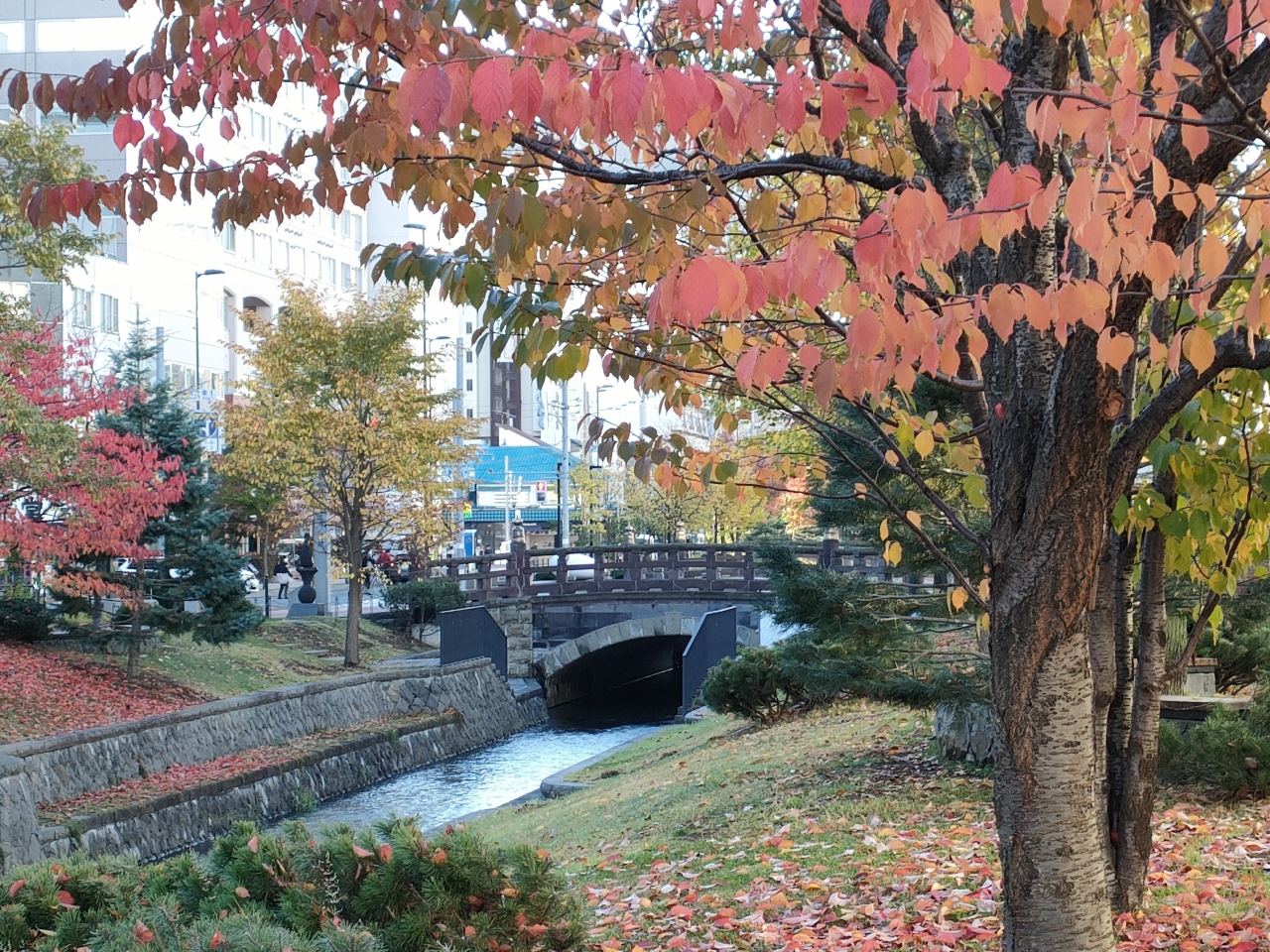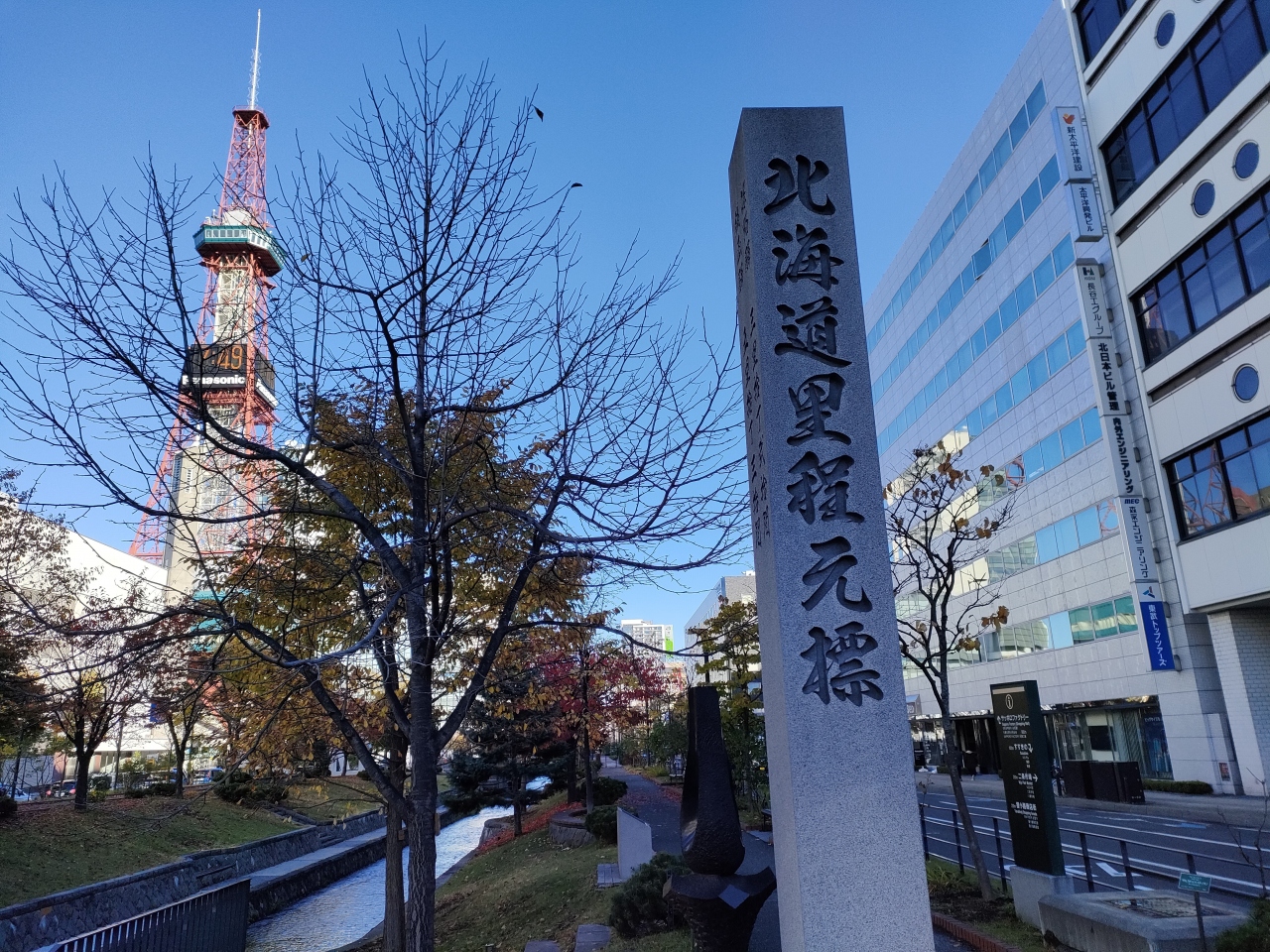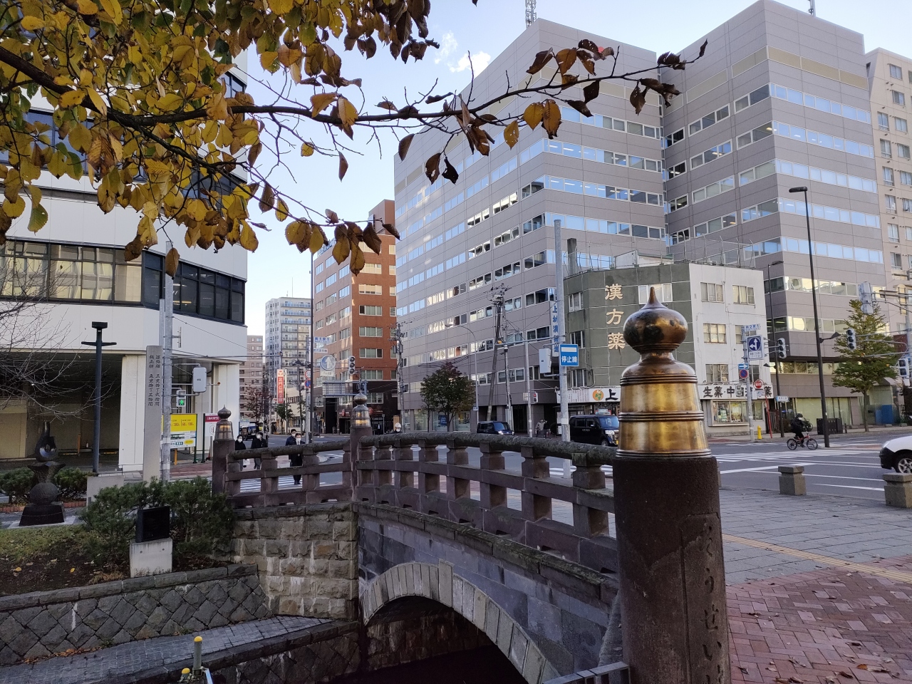 さっぽろテレビ塔の裏から南側(二条市場や狸小路方面)へ100mちょっとのところに架かる創成橋の袂にあります。