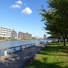 助任川は、徳島中央公園の北側に沿うように東西に流れる一級河川です。川沿いには散策路が設けられていて、私たちは中央公園観光後に歩きましたが、右手に公園の緑を、左手に川を眺めながらの散策はとても気持ちが良かったです。
