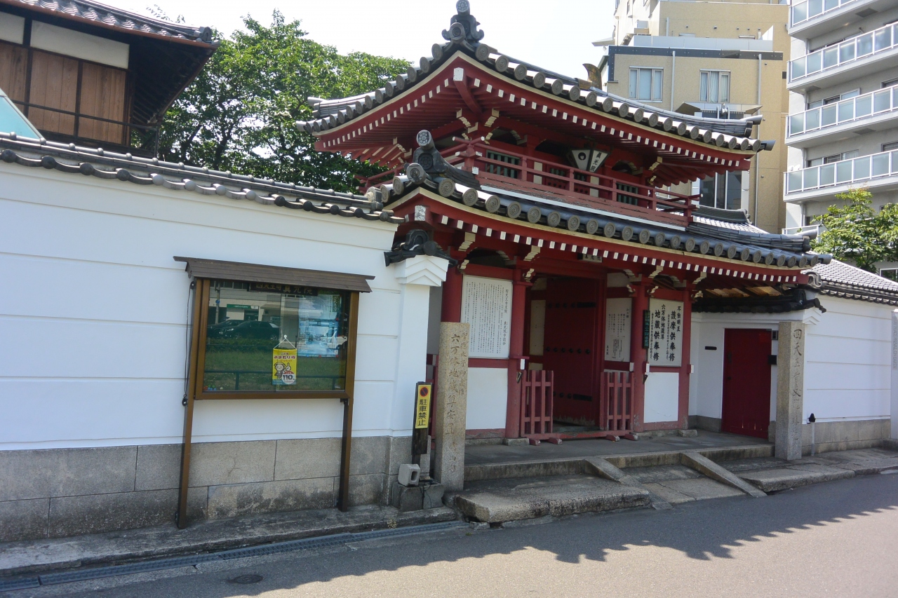 赤い楼門が目を引く寺院です。四天王寺支院で、なんと聖徳太子が創建という大変歴史のあるお寺でした。今では寺院前の広い道路ができて四天王寺とは隔たっていますが、昔はこのあたりも四天王寺の境内地だったのでしょうね。