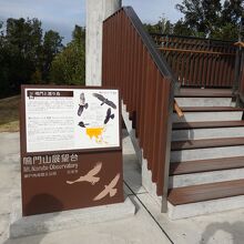 「鳴門山展望台」は鳴門公園の中でもかなり北側にある展望スポットのひとつです。ここからは岬の先端に位置する孫崎灯台の姿も少し見えますが、人が少なく穴場スポットだと感じました。鳴門海峡には渡り鳥の姿も多く見られ、展望台の階段の脇には渡り鳥に関する案内書きも設置されていました。
