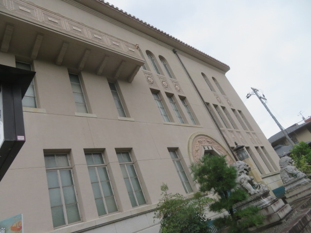 この建物は、大正15年に武田五一京都帝国大学教授の設計によるものです。シンプルなデザインのようで、バルコニーが素敵で、中華風です。実際、屋上には、中国から移築された八角堂も乗っかっています。なので、正面からだけでなく、少し離れた場所から見て下さい。