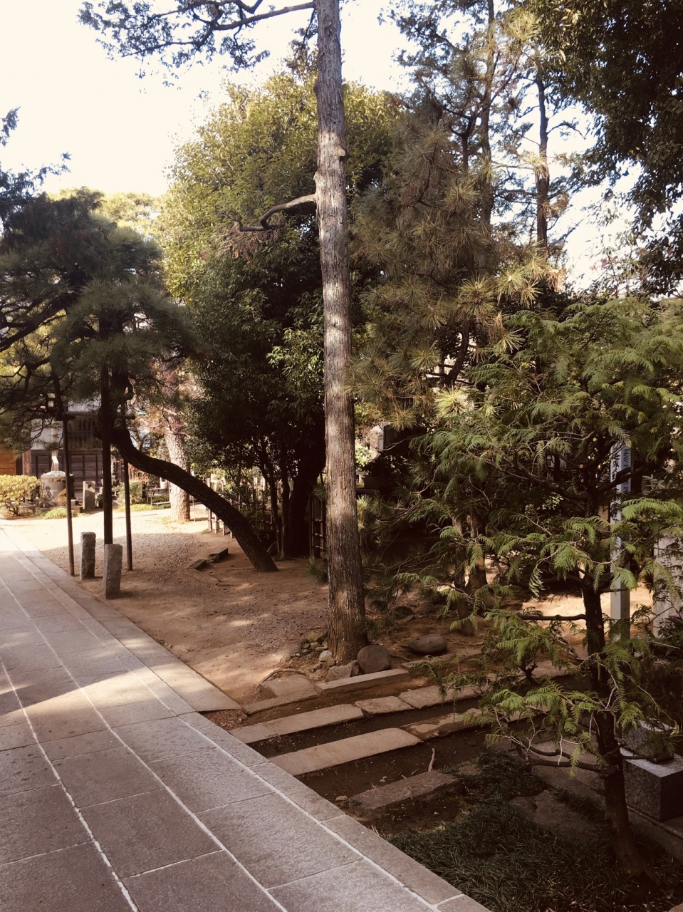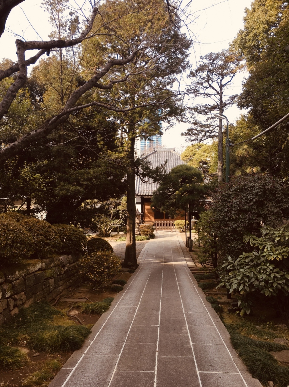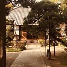 幹線道路沿いにありますが、境内入ると少し緩やかな坂道が続き、本堂まで伸びていて左右に草木が植わり良い光景を醸し出していました。木に隠れて、古い長身のお地蔵さんがあり、本堂の横が墓地になっている、緑多い寺でした。