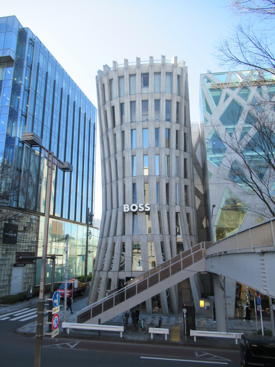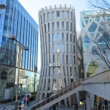 表参道沿いには表参道らしさが感じられる外観のデザインが素晴らしい建物や目を見張るような建物が点在しています。このビルもその一つで、コンクリートの柱を積み上げたような姿をしています。1階から3階にはBOSSが入店、上の階にはクリニックや美容室が入っています。表参道やその周辺は、建物の外観を巡りながら散策するだけでも面白いエリアだと思います。