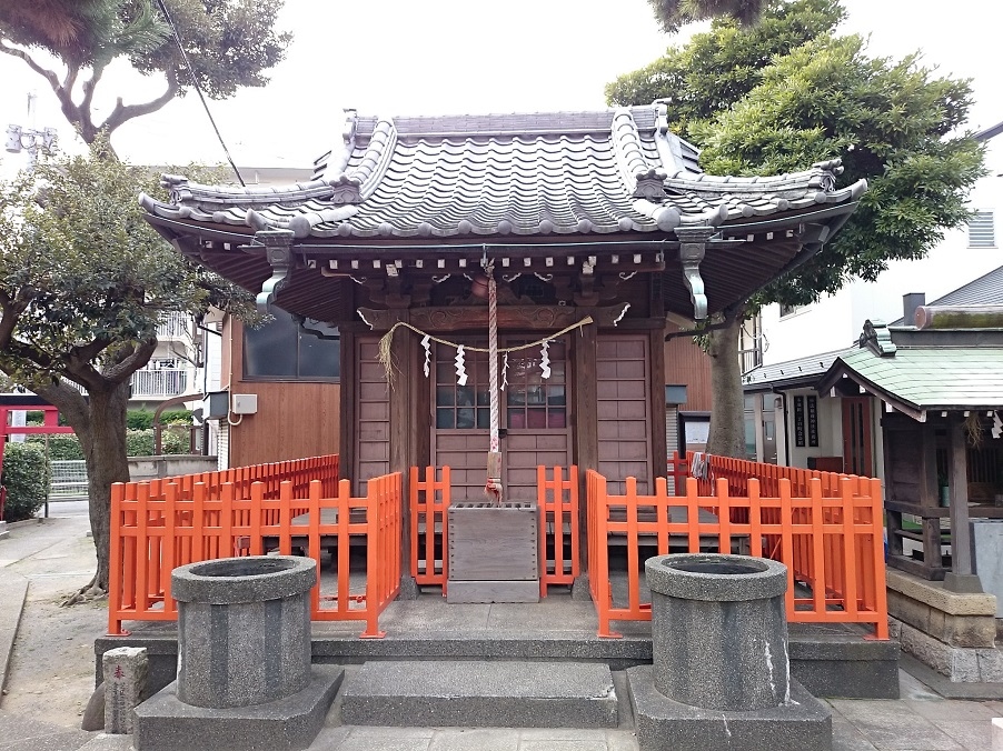 京浜急行空港線糀谷駅から徒歩15分程度、大田区本羽田1丁目に鎮座している稲荷神社で、羽田七福いなりめぐりの1社です。享和元年(1801年)に発生した大洪水から復興するために創建されたそうです。本殿に向かい11基並んでいる赤い鳥居が印象的な神社です。