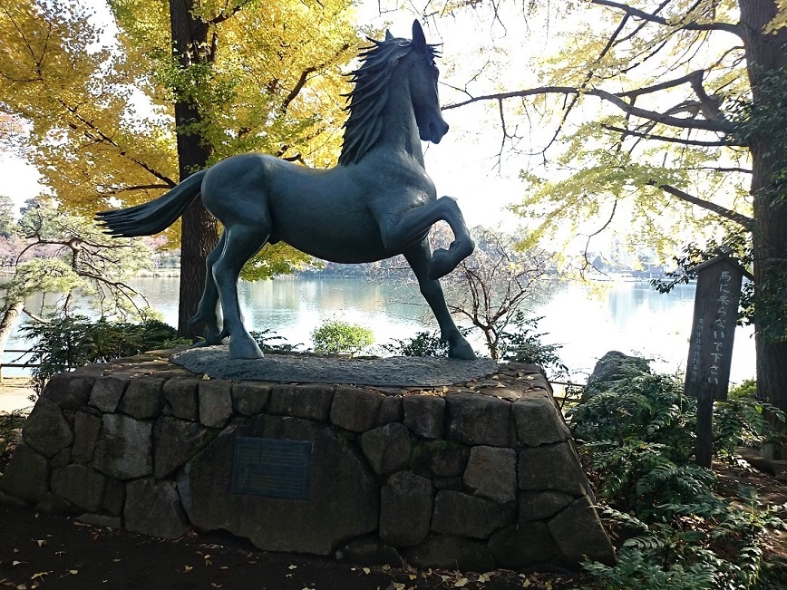 東急池上線洗足池駅から徒歩10分程度、大田区南千束2丁目の洗足池のほとりにあります。治承4年(1180年)源頼朝が安房国から鎌倉へ向かう途中に洗足池に立ち寄った時に名馬が現れ、池月と名づけて乗馬したのだそうです。意識していないと見落としてしまいそうな場所にありますが、洗足池観光の際には立ち寄っておきたいスポットです。