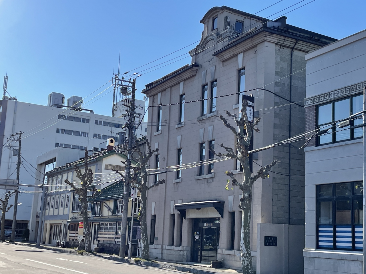 堺町本通りのメルヘン交差点からほど近い所にあります。1921年に建設、小樽に現存する数少ない本石造3階建ての建物です。オフィスビルとして建築されたとのことで、シンプルモダンな外観です。現在は小樽オルゴール堂系列店「遊工房」となっていて、オルゴールの制作体験が出来ます。