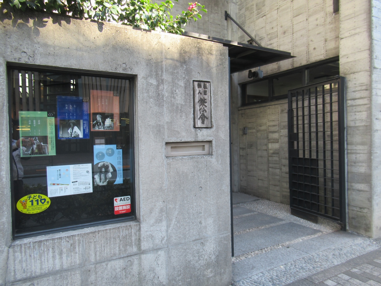 表参道駅から3分ほど歩いたみゆき通り沿いにあります。入口が狭い建物なので通り過ぎてしまいました。目をひくプラダの建物のはす向かいに建っています。塀の掲示スペースに能の稽古を勧める案内がありました。謡と仕舞についてわかりやすく記されていて、稽古に必要な物など情報が書かれていました。見学大歓迎とも書いてありました。実際に見る機会が少ない伝統芸術の能が一般に開かれていることを知り、意外でした。
