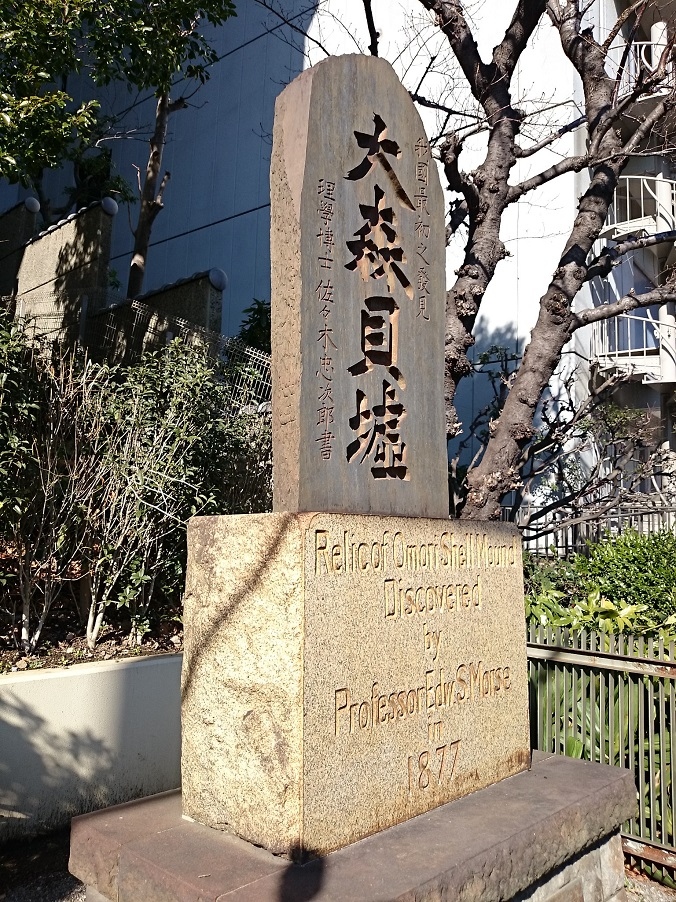JR京浜東北線大森駅から徒歩5分程度、大田区山王1丁目のJR線路沿いに大きな発掘記念石碑が立っています。明治10年(1877年)この場所から縄文時代後期の遺物が出土しました。貝塚は品川区側にもまたがっていて、品川区側には大森貝塚遺跡庭園がありました。大森貝塚は1か所なのにスポットが2つに分かれているのに驚きました。(それぞれの自治体の方針なのでしょう)
