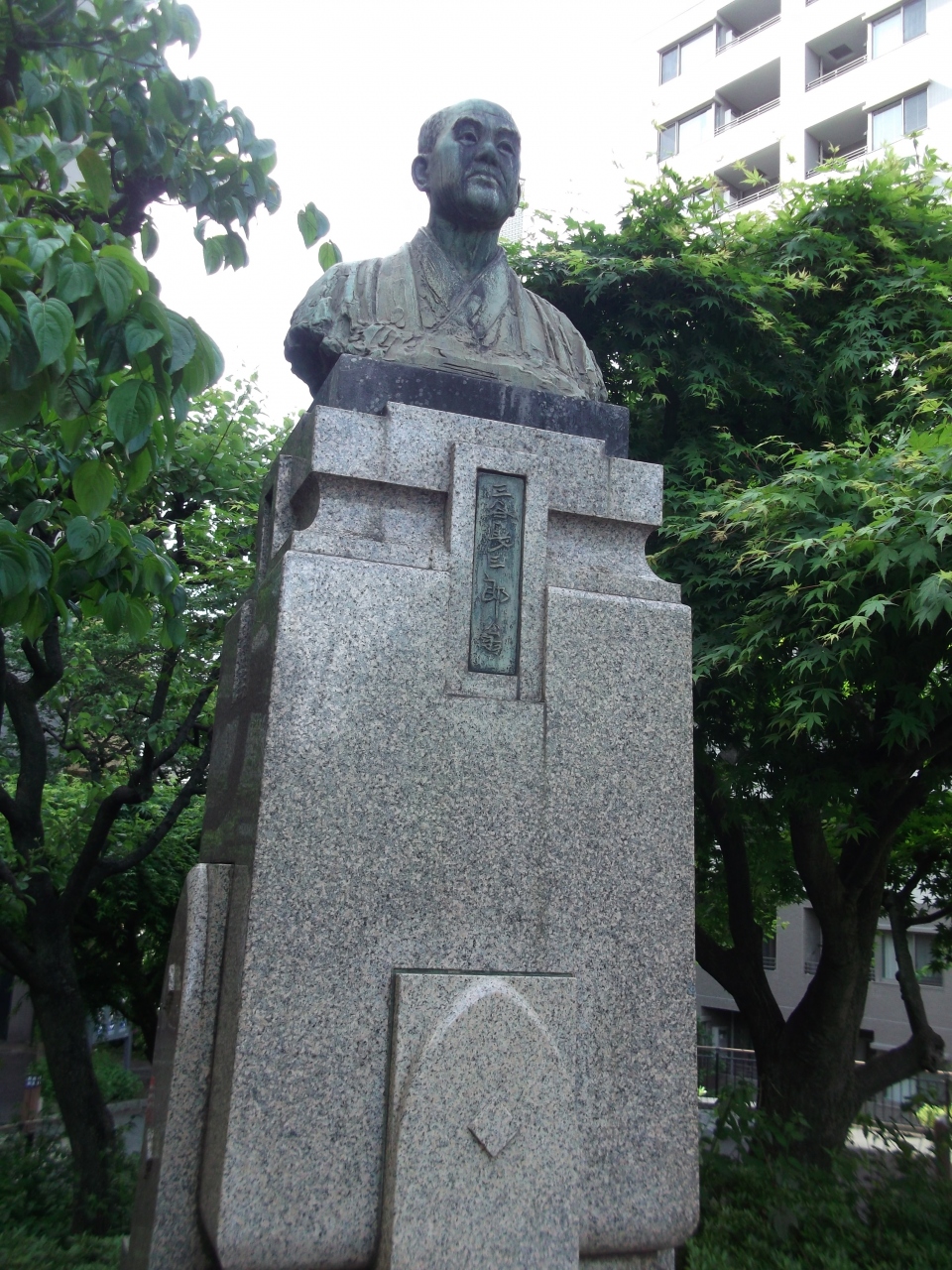 神田明神に隣接する宮本公園の一角にこの銅像が建っていました。三谷家は江戸時代初めから神田で銅や真鍮を扱ってきたそうです。胸像は明治の初めに生まれた十代目を讃えるもので、近代産業への貢献と学校教育への資金・備品援助の功績を後世に伝えるために昭和9年に建てられたものです。像の製作は、長崎平和祈念像の作者として知られる北村西望というのもすごいです。