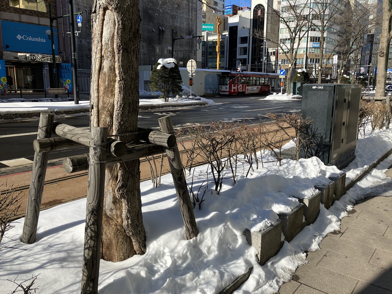 札幌駅から大通公園やすすきのエリアに向かって伸びる大通りです。1月に札幌へ旅した時に、すすきのから札幌駅まで札幌駅前通を歩きました。地下道も繋がっているのですが、外の様子が見てみたいと思ったので大通りを歩きましたが、所によって雪が残っていたり凍っている場所があるので、歩く時は注意が必要でした。
