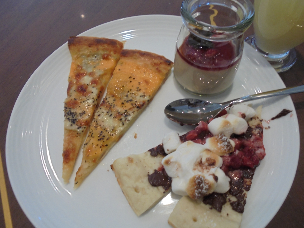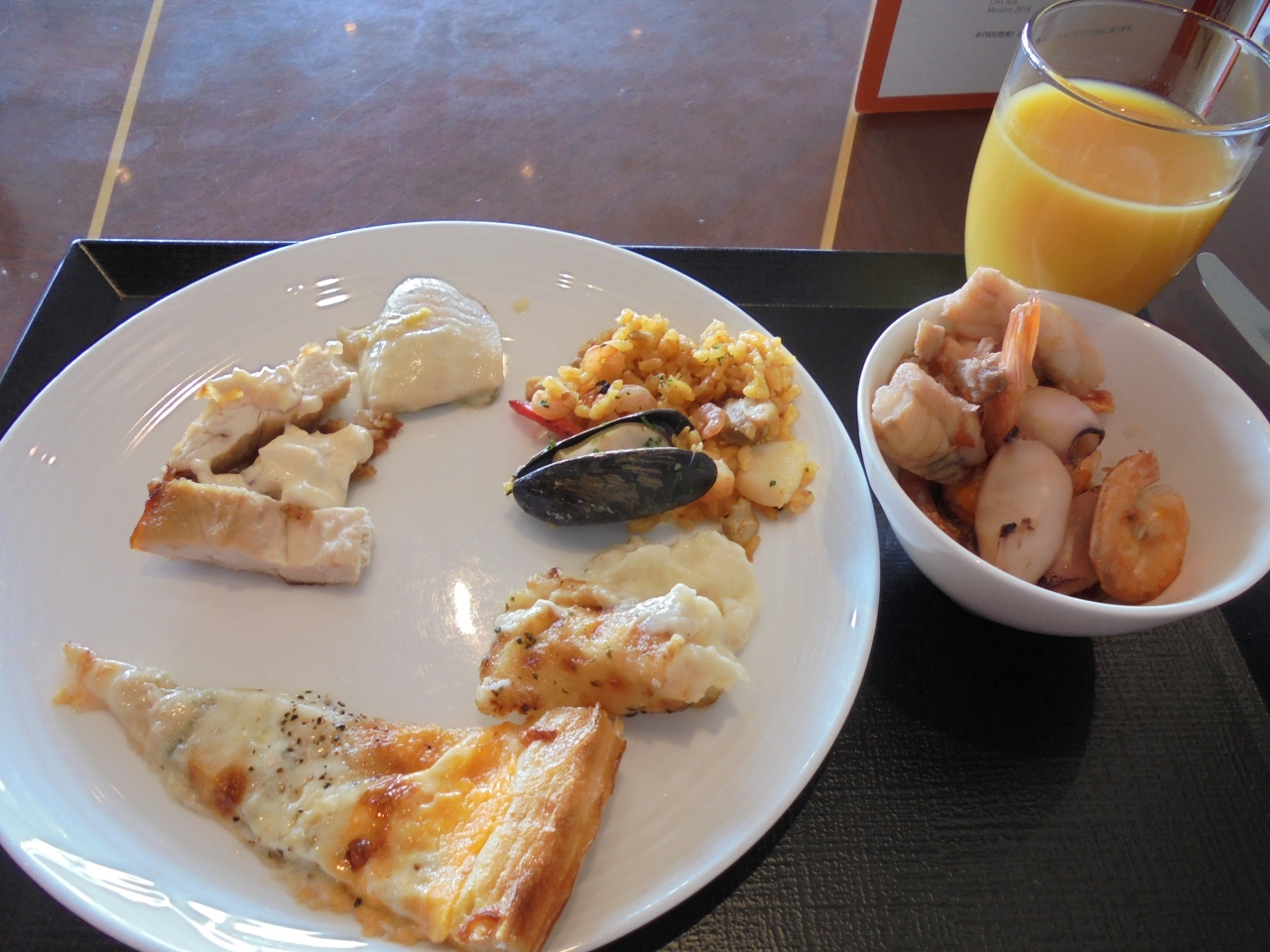 マリオットアソシアホテル15階、フロントの右横にあるレストランです。入口から奥は、大きな窓から見える景色が最高です。名駅前から東側全体が見渡たしながら、ゆったりと食事できる雰囲気がいい。メニューは和洋のブッフェ式。種類はかなり多いほう。どの料理も美味しいが、特に美味しかったのは海鮮メニューとピザ。海老、イカ、アサリ、白身魚などの素材の旨みが出るように、美味しく調理されている。ピザはチーズがメインとバナナ•ストロベリーの3種類あるのが嬉しい。ローストビーフや麺類のオープンキッチンまである。麺はラーメンときしめん。うどんでないのがご当地名古屋らしい。