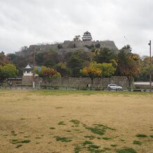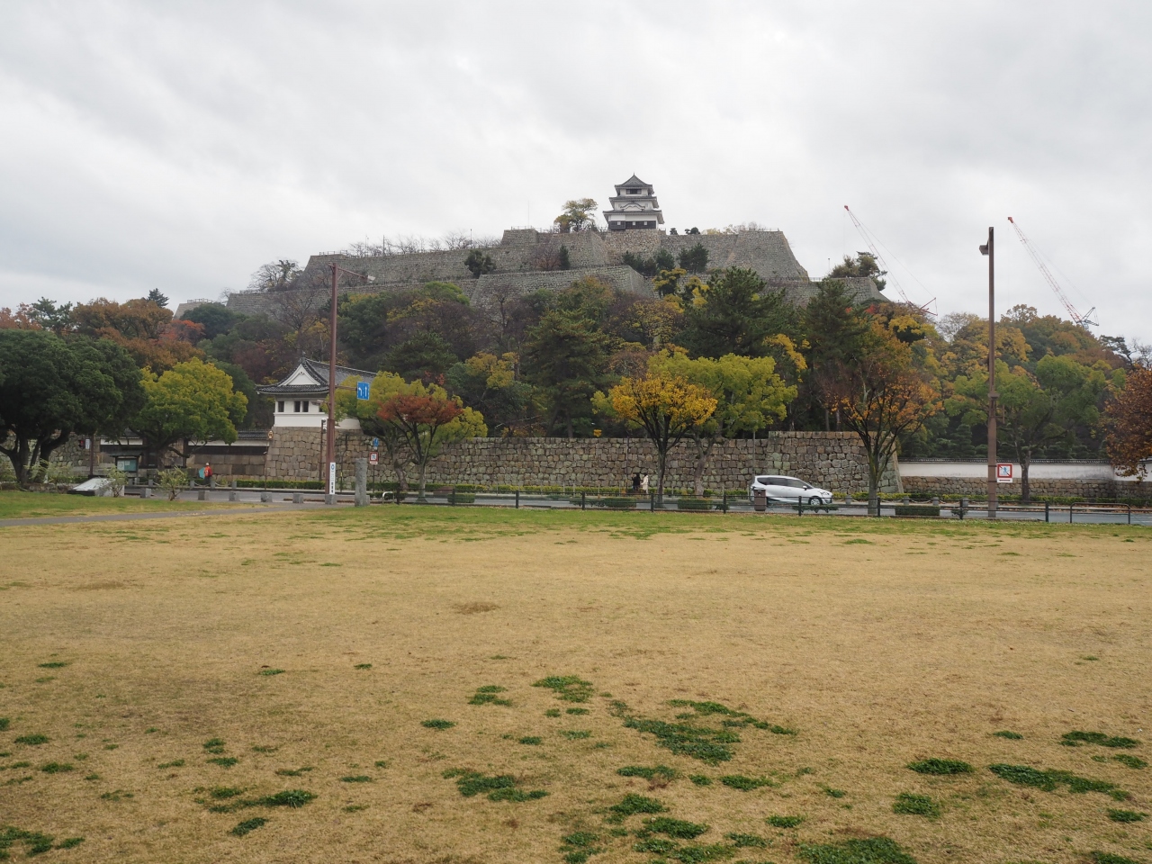 丸亀市民広場は丸亀城の堀のすぐ北側にある広い公園です。芝生の公園で特段何もない公園です。なにか建設予定地かなと思いましたが、特段予定はないようです。広い公園で何もないので、障害物もなく、きれいに丸亀城やその山の亀山の全体像が写真に撮れます。広い一等地なので数年後には何か建っていそうです。