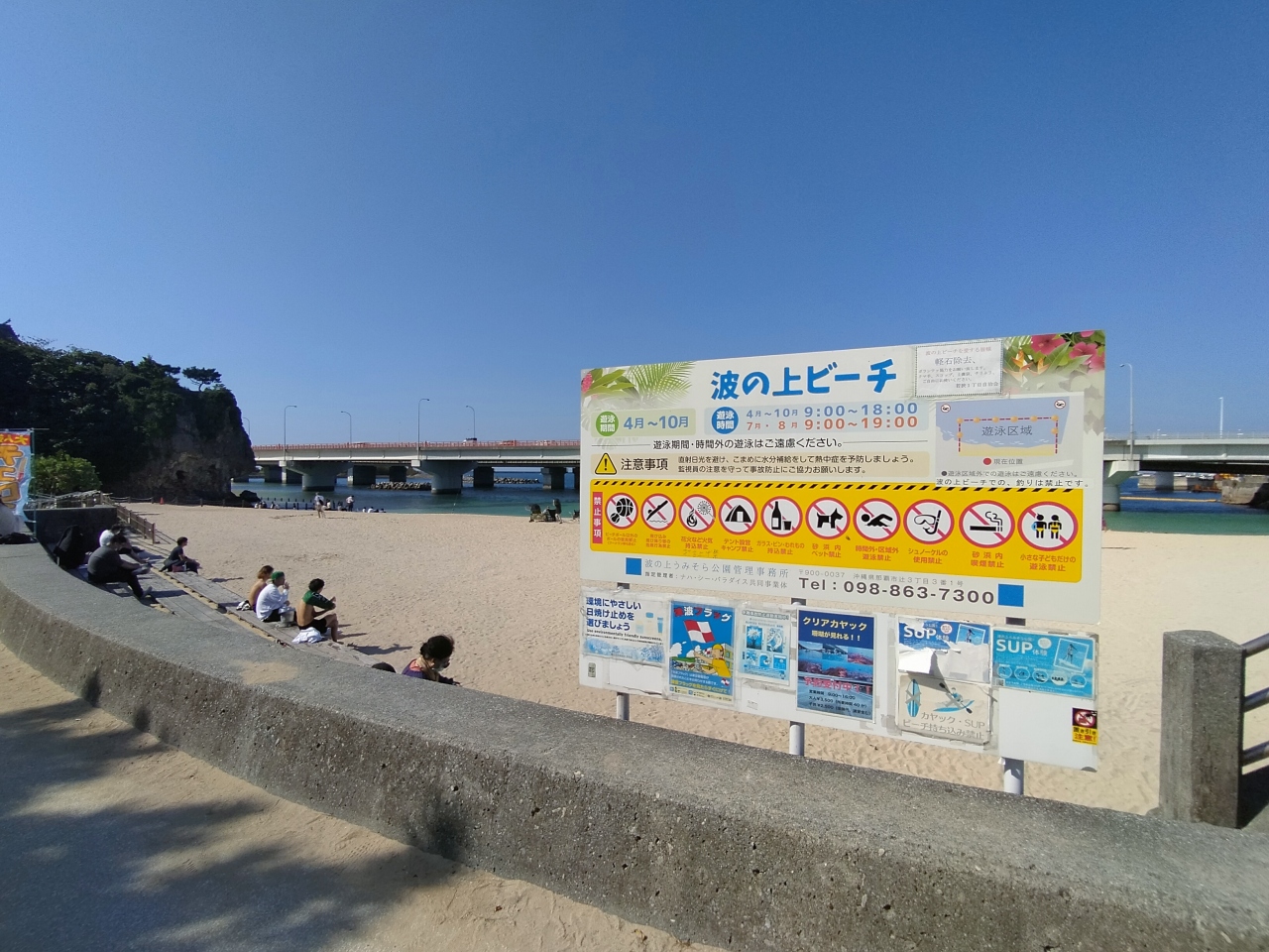那覇市街地から徒歩で行ける人工のビーチで、目の前の大きな橋が、特徴的です。