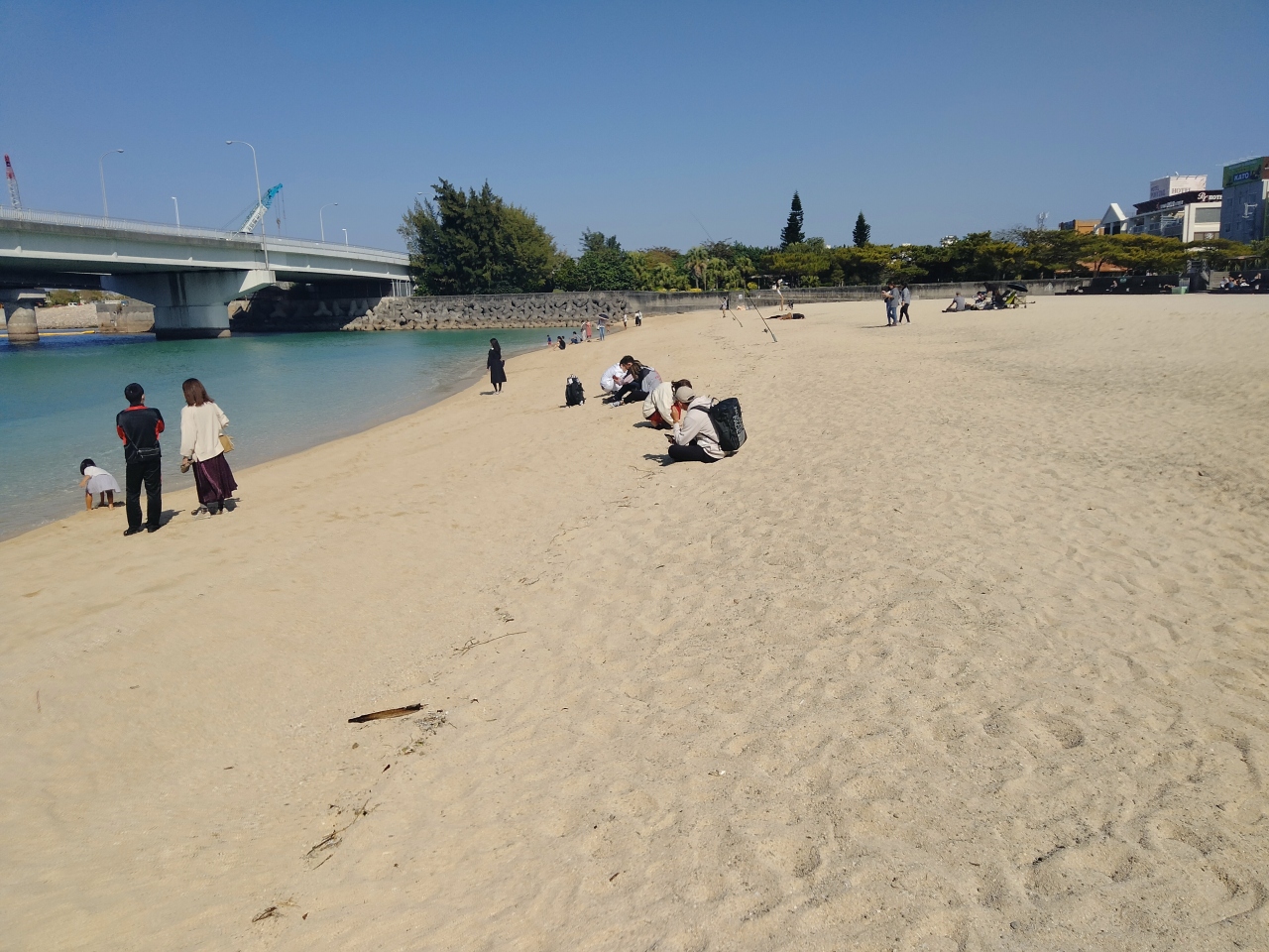子供を遊ばせるママさんやテントを張って釣りをする人たちが、のんびりとしていました。