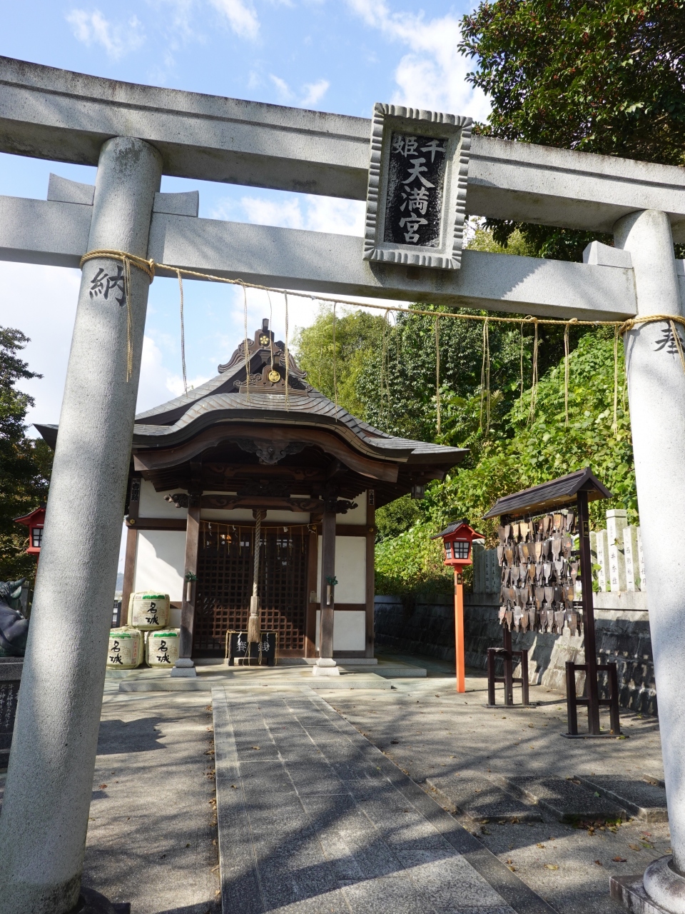千姫天満宮は、姫路城の北西150メートルほど、男山の中腹に鎮座する小さな神社です。元和9年に千姫によって創建された徳川家ゆかりの天満宮です。
