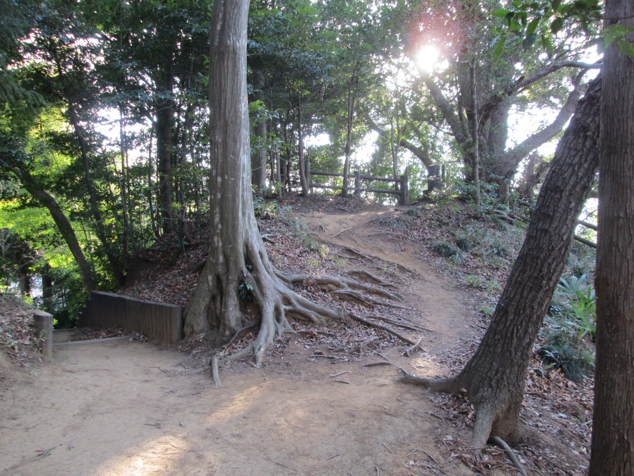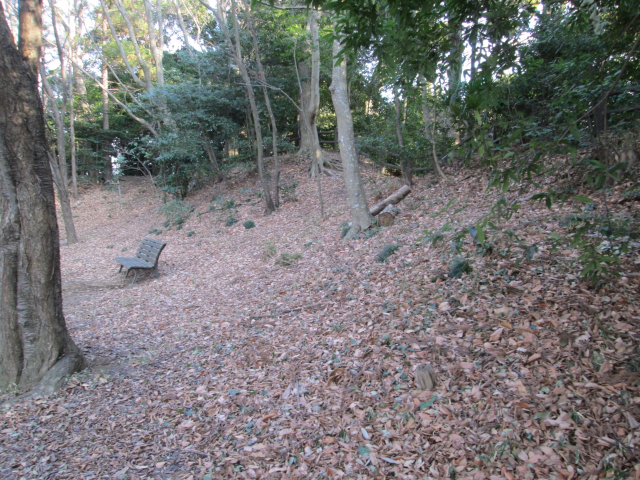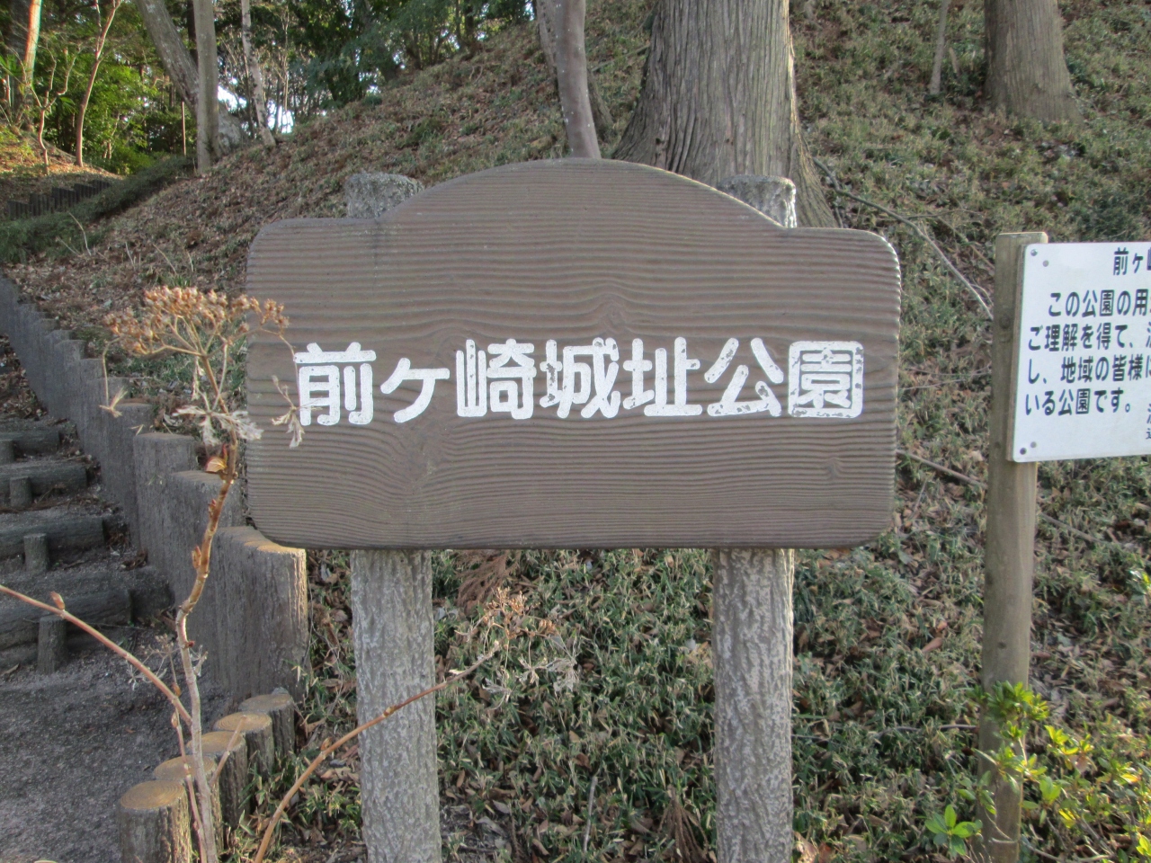 築城主は高城氏の家臣花井氏か田島刑部少輔といわれていま。築城年は不詳、廃城は1590年です。高城氏の小金城の支城の一つで、今は整備され前ヶ崎城址公園になっています。入口に城址の説明板が建っています。本郭下東側に空堀が見られます。登城口から木段を登ると、本郭跡に着きます。周囲は土塁に囲まれています。南側に虎口跡(城郭の出入口)またその右手には櫓台跡(見張り台または防御施設)が見られます。虎口を通って木段を下ると東側に犬走(または腰郭)が見られます。遺跡は土塁、空堀、櫓台跡、郭跡虎口等がみられ、満足できる城址です。遊具のある公園ではありませんがお城ファンには興味ある公園です