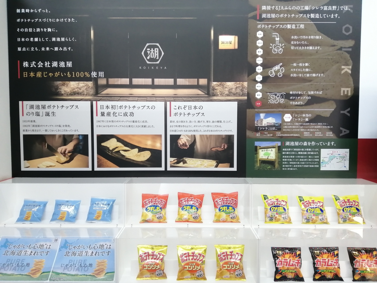お土産売り場のポテトチップス「ふらのっち」は、隣接する工場で作られているそうです。