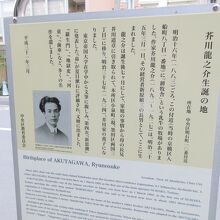 築地界隈を散策していた際、聖路加国際大学近くに【芥川龍之介生誕の地】を示す案内板が設置されていました。【クモの糸】や【羅生門】など、誰でも一度は読んだことがある小説を書いた芥川龍之介の生誕の地が築地にあったとは知りませんでした。彼の母親がこの地で牛乳屋を営んでいたことなど、詳しく記載されていました。居留地通りを築地川公園に向かって歩くと場合、公園手前の左手に設置されていました。