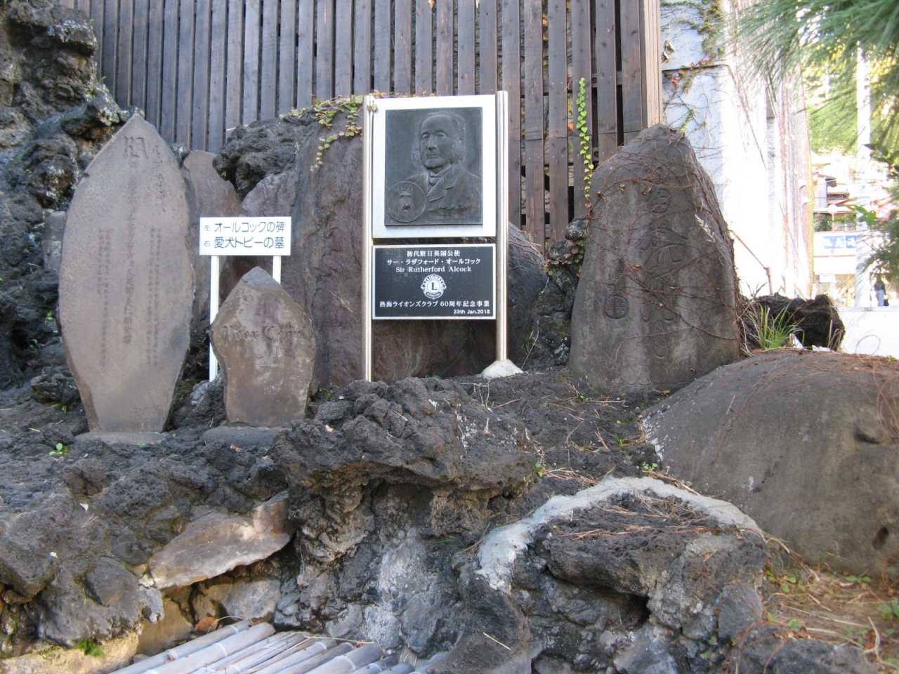 熱海七湯巡りをしていて大湯間歇泉の横に石碑があるのに気が付いて観て見ました。初代駐日英国公使オールコックの愛犬トビーが間欠泉で大火傷を負って死んだことを弔う石碑です。里人は人の死と変わらないやりかたでトビーの葬儀を行い弔ったそうで、この事件以降、オールコックの日本人への見方が良くなり、英国世論が親日になるきっかけをもたらしたそうです。日本人の優しさが判る出来事て、誇らしくなりました。