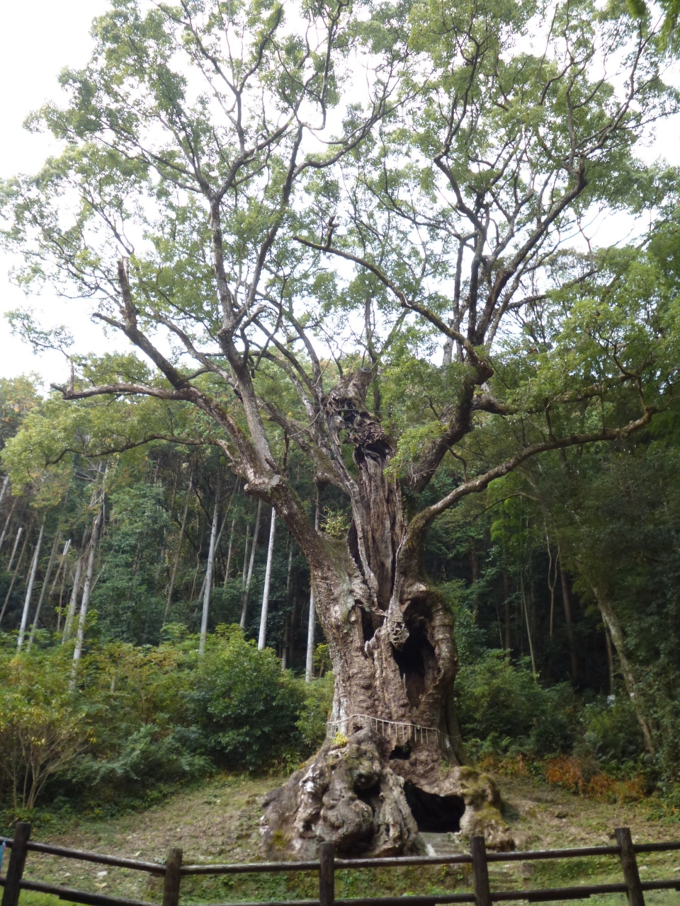 武雄神社の境内を通り過ぎ、竹林を歩いていくとその先に大楠が見えてきます。この辺りは、神の隠れ住まう山「神奈備」の神域になっているそうです。大楠の周囲には柵がめぐらさられていて、直接触ることはできませんが、気を守るためには仕方がないと思いました。