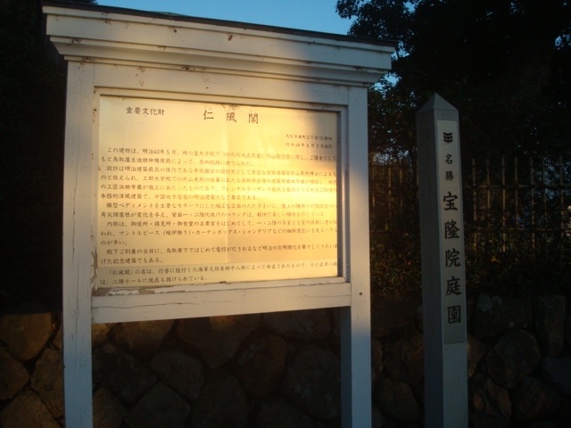 仁風閣は有料ですが、法隆院庭園は無料のようだったので、観光の際に行ってみたいと思っていました。16時半過ぎで敷地の門が閉まっており、仁風閣はもちろん庭園にも入れませんでした。庭園という言葉から勝手に入園自由だと思い込んでいたので失敗しました。