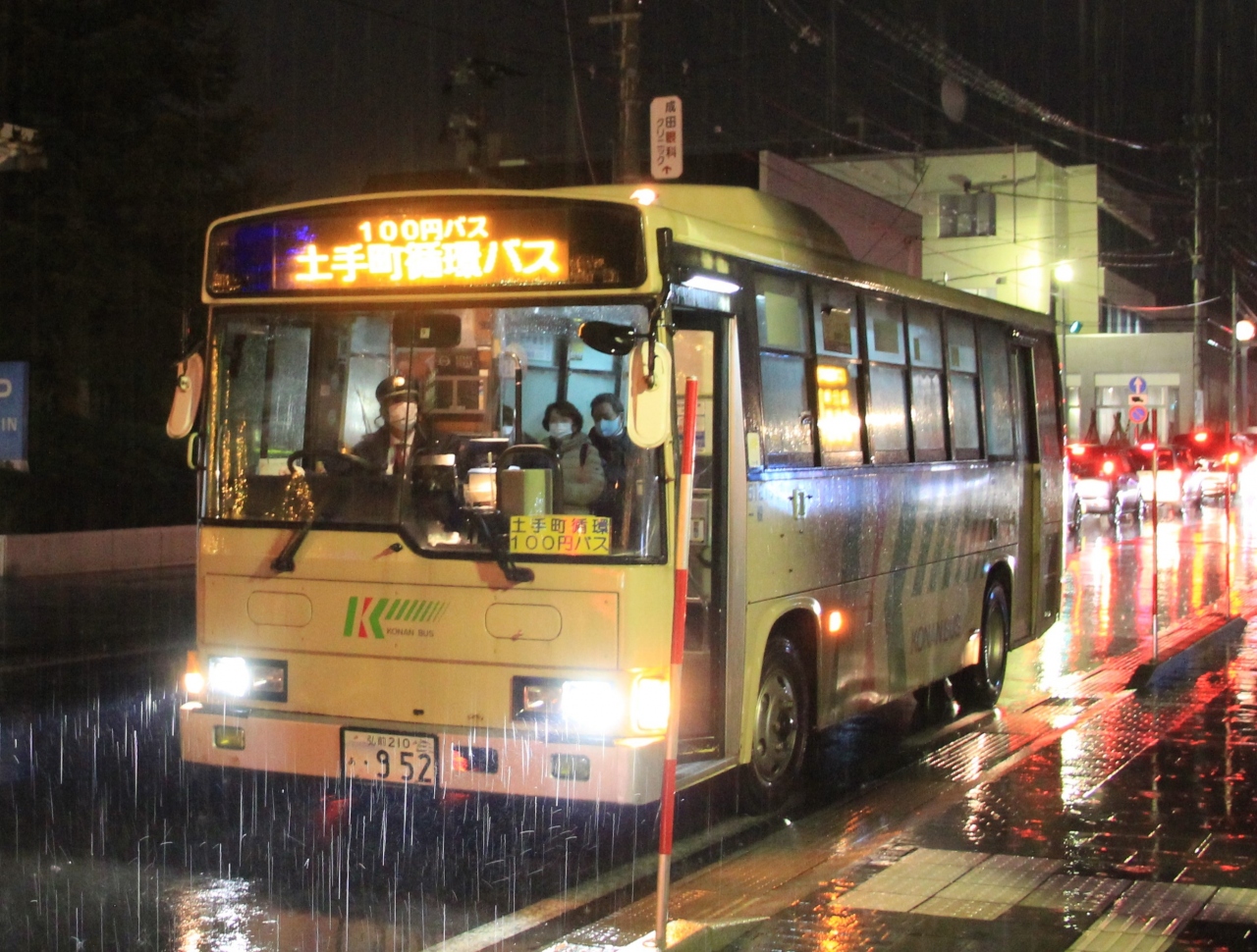 弘前駅前から弘前城界隈へ向かう際、100円バスを利用しました。