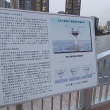 満潮時と干潮時を水位測定に始まり、地味な作業を経て明治24年に設置されたこと等を記した説明板あり。