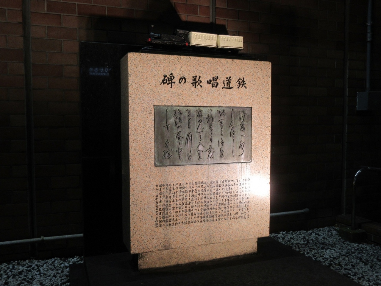 JR新橋駅汐留口を出て、【ゆりかもめ】の駅に近い場所に「鉄道唱歌の碑」がありしばし足を止めました。すぐ近くには蒸気機関車の巨大な車輪もおかれていて、ここ新橋が日本における鉄道の歴史が始まった場所なのだと、この碑を見て再認識させられました。
