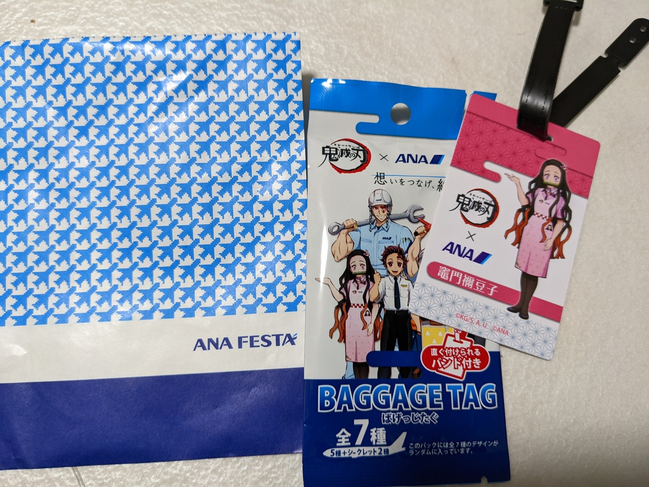 ANAフェスタでは、那覇空港と石垣空港限定のマンゴーフルーツガレットと、ANAフェスタ限定の鬼滅の刃のバゲッジラグが売っていました。