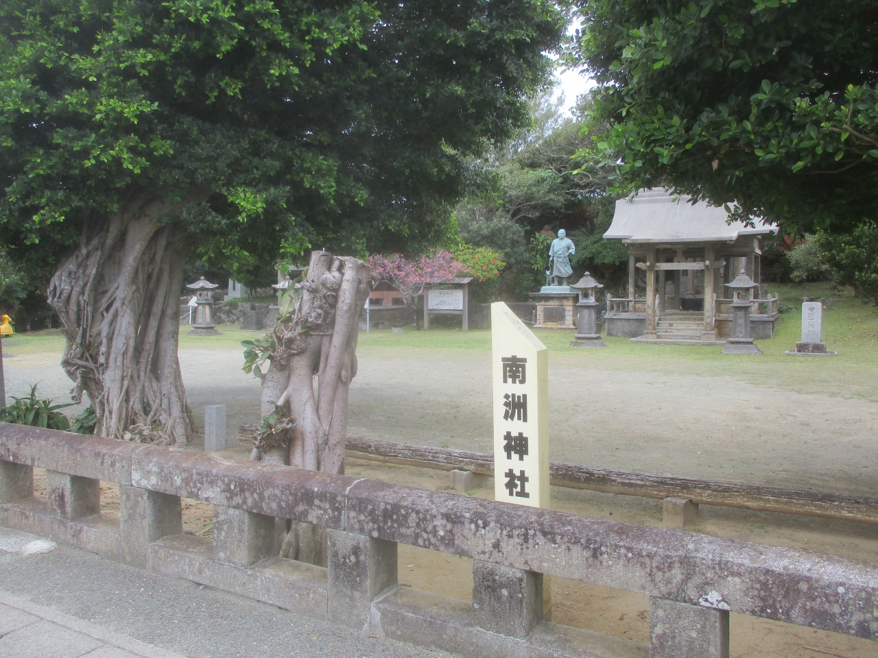 西郷隆盛をしのんで建てられた道路脇にある神社で、境内に犬をつれた西郷隆盛の銅像、敬天愛人の碑が建っていました。西郷隆盛と沖永良部島の関わりなどを知るには、ここから歩いて行ける西郷南洲記念館とセットで訪れるのがいいと思います。