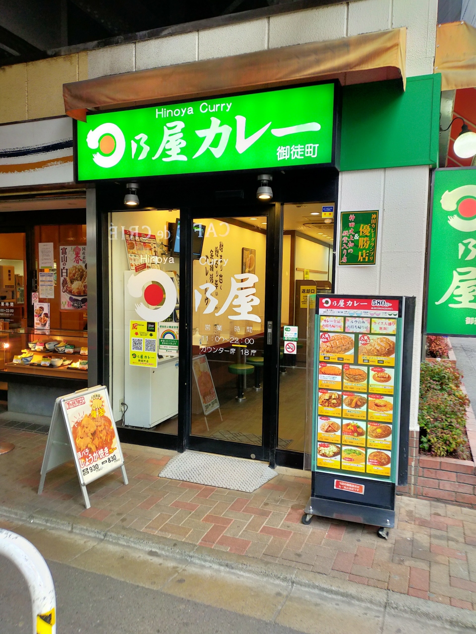 JR御徒町駅の南口改札正面、線路ガード下にある日乃屋カレーです。どこもそうですが店内はコンパクトな造りになっています。カレーサイズは大盛360g、普通盛300g、