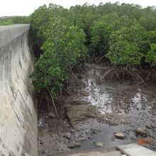 小浜島の西側の海沿いに、マングローブの林が続いています。