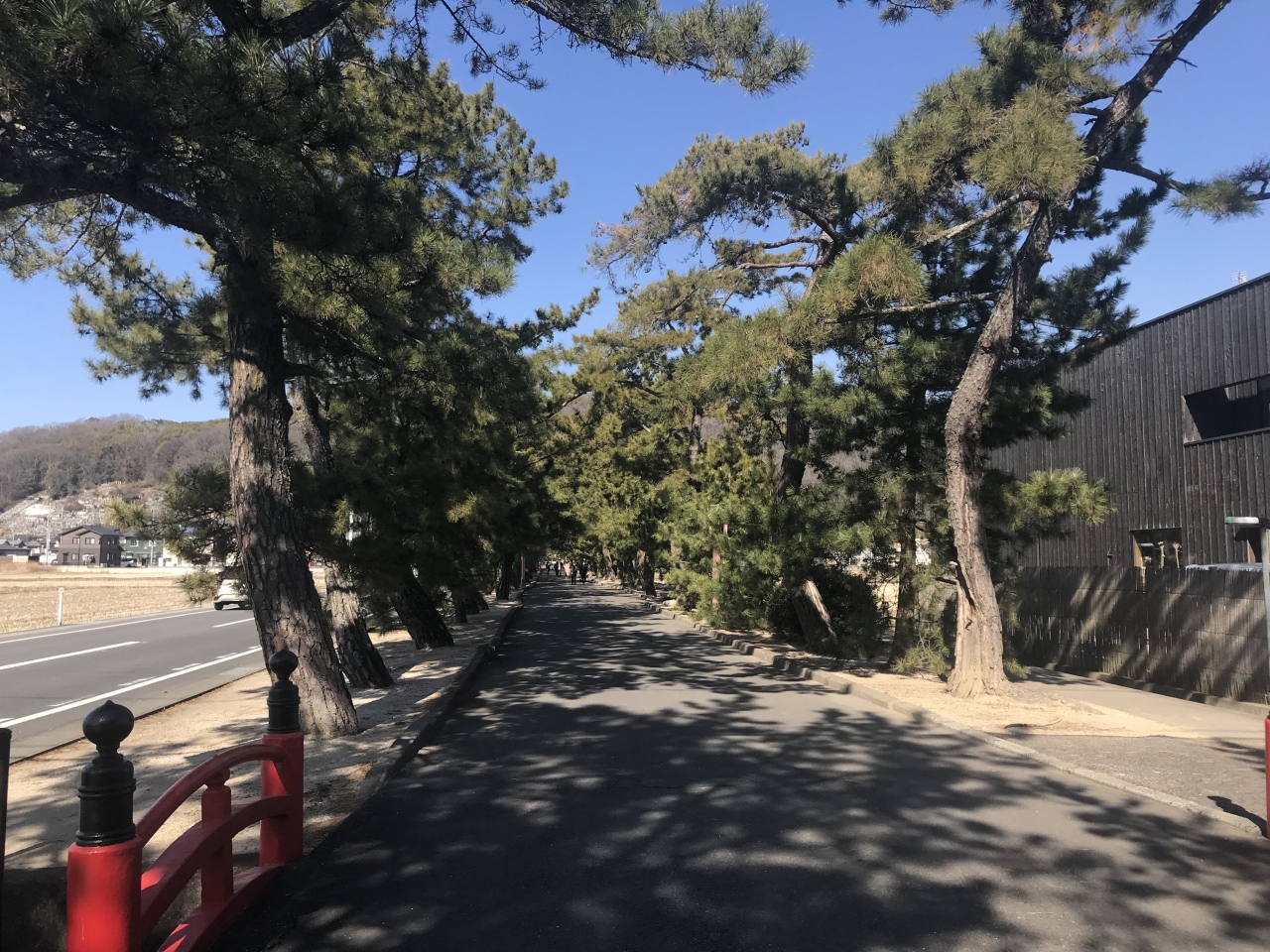 吉備津の松並木は、JR吉備津駅からのすぐの吉備津神社二ノ鳥居から続く吉備津神社への参道です。時代を感じさせるような大きな松の木ばかりで、とても雰囲気が良かったです。県下最大級の松並木で、郷土記念物に指定されているそうです。