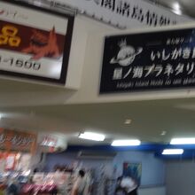 石垣島離島ターミナルの中にあるお店です。ターミナルの西端の方にありました。二階に尖閣諸島の展示があるらせん階段の近くです。いろいろなものが店内にあって、ちょっと必要なものがあった時には便利だと思います。