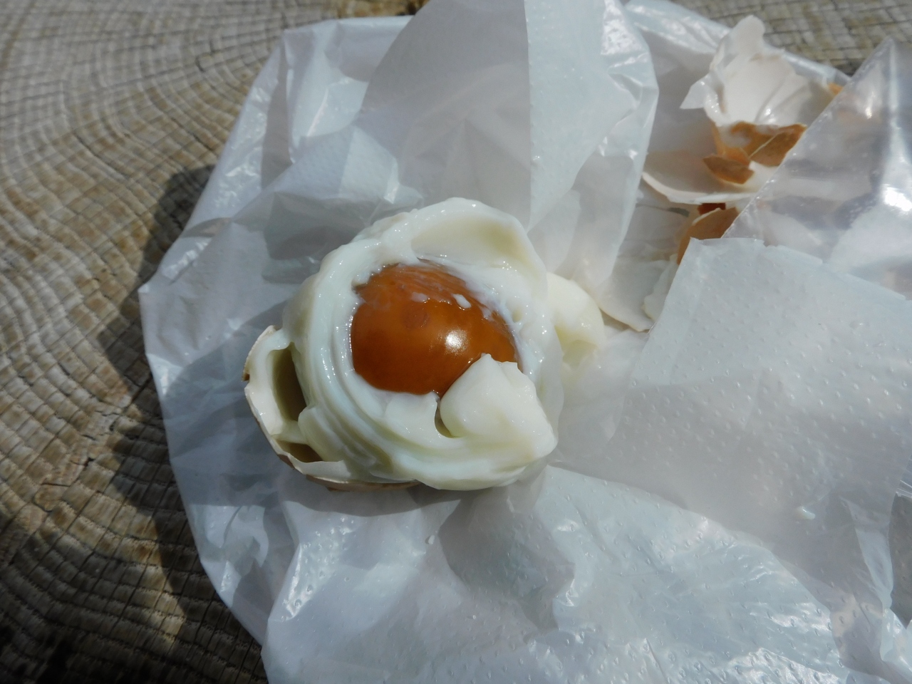 平湯温泉の温泉街の中にある商店です.お土産店でもありますが,雰囲気は商店と呼ぶのが最も相応しいお店です.ここの名物は店の隣にある温泉の源泉を利用した温泉玉子で,はんたい玉子という名前で売られています.その場で食べる専用のゆで卵で,塩を付けてくれます.玉子は半熟ですが,黄身だけが固まっているので,はんたい玉子と呼ぶらしいです.