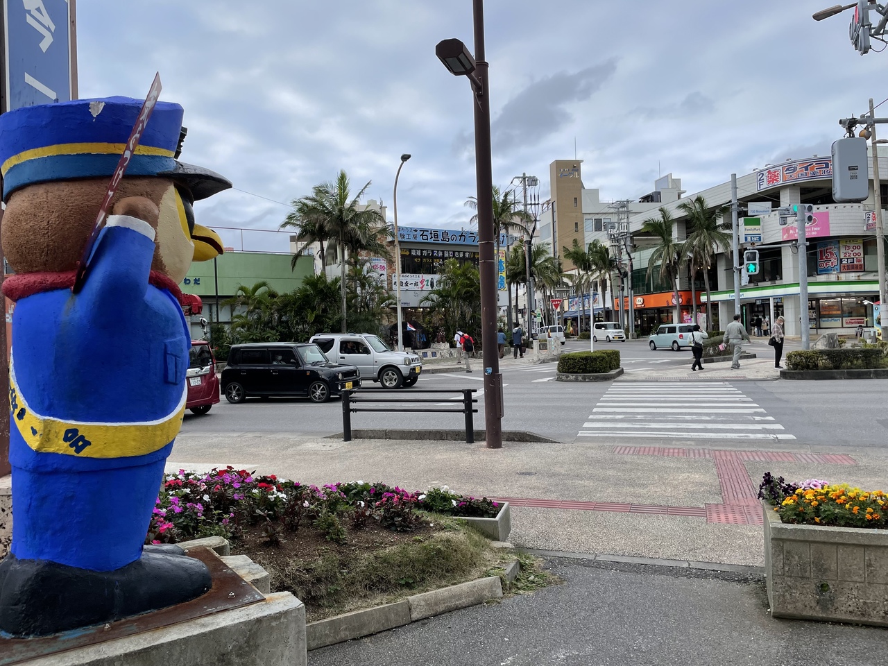 桟橋通りとやいま大通りがクロスする大きな交差点で、交通量も人通りも多いです