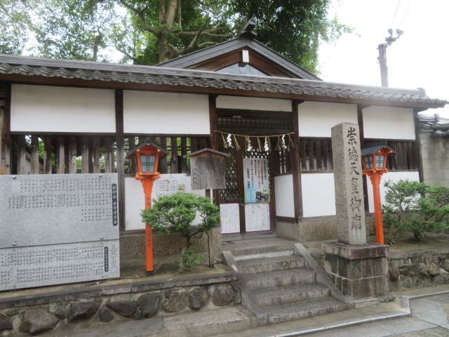 安井金比羅宮に隣接する御廟です。石碑のそばにある赤い灯篭がいいアクセントになっています。入り口から内部の様子を見ることができます。木の手前に石碑が二つ並んでいました。天皇の御廟としては、ユニークな構造ですね。