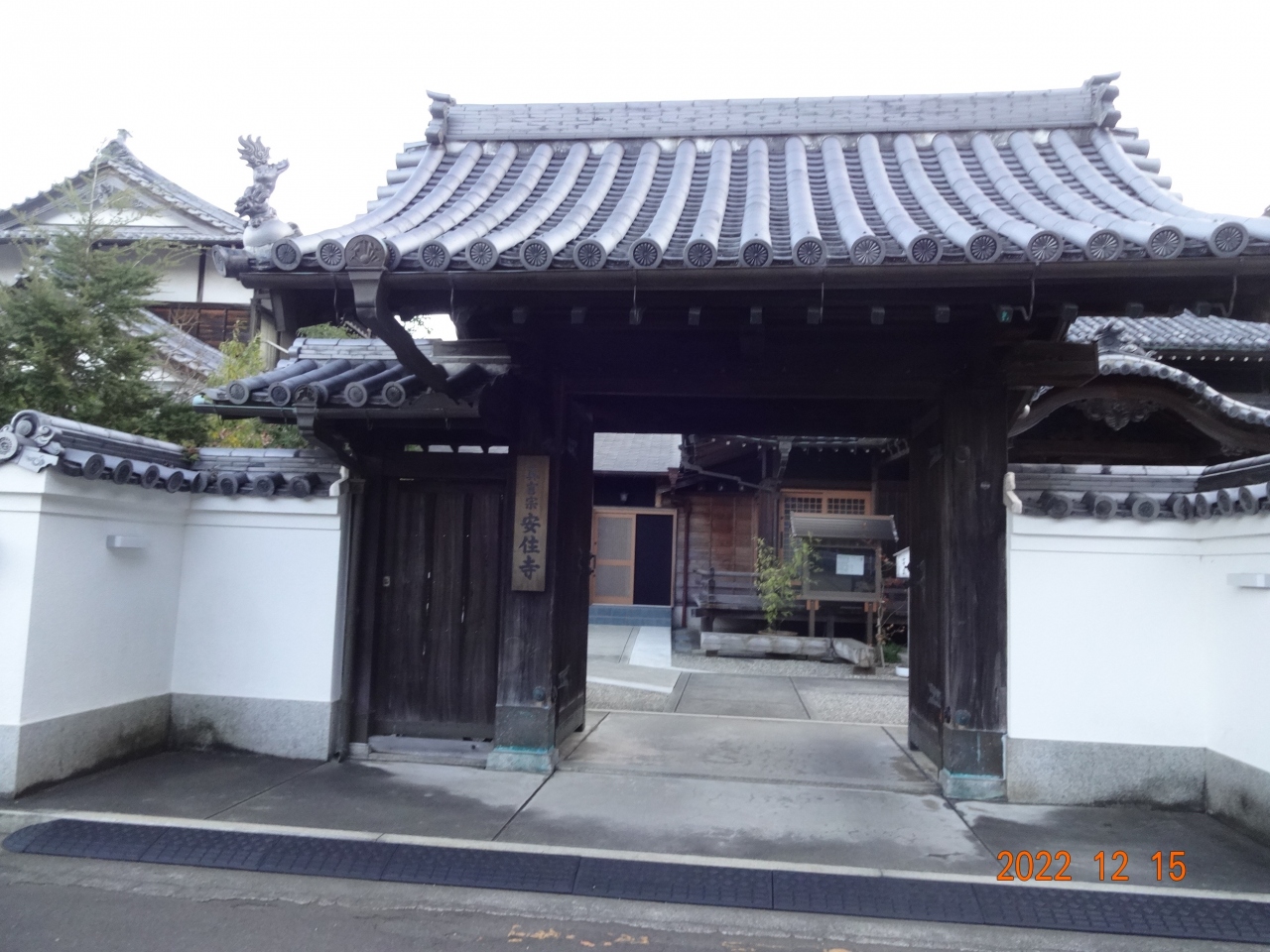 山門は立派で雰囲気がありました。お寺という雰囲気の外観です。といっても、大きなお寺ではありません。お寺の周囲は白い壁の塀の上に瓦の屋根がのっています。真っ白な塀だったので、屋根があると雨がしのげるのかな(?_?)と、かってに妄想しました。