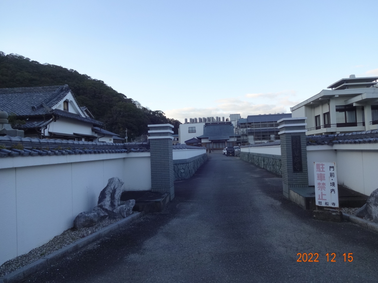 本堂までの参道が長く、両側には青石の塀が続いていました。