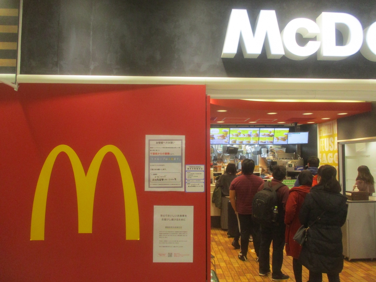 空港での食事は値段が高いというのが定番ですが、マクドナルドを利用すれば安く済みます。ただし、座席数が少なめなのでピーク時は座れないことが多々あります。しかしながら、空港内はいたるところに椅子があるのでテイクアウトで購入してどこかで食べるという手がありました。