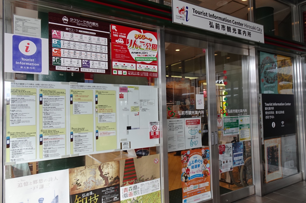 観光案内所は、弘前駅の出口一階にあり、旅のはじめに便利に立ち寄りました。