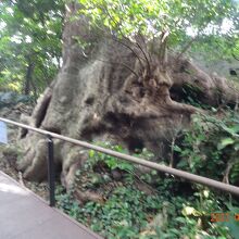 首里金城町石畳道に、「首里金城町の大アカギ」に行く表示がありました。坂道の左側です。その通りを、奥に奥にと歩いていくと、突き当りに、更に道しるべがあり、大アカギに行く木道が整備されていました。確かに大きな木でした!