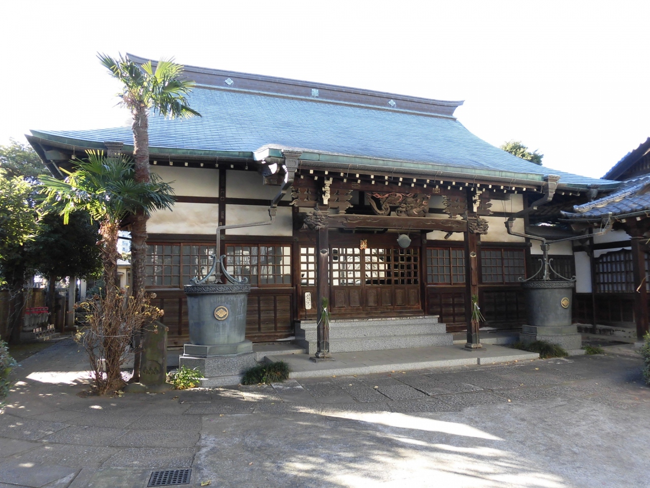 都営荒川線の西ヶ原4丁目駅近くで立ち寄った寺院です。規模はさほど大きくはありませんが、境内に入るとしっとりとした落ち着いた雰囲気の本堂がありました。本堂正面上部の欄間部分には、龍の彫り物があって、なかなかきれいな装飾だと思いました。