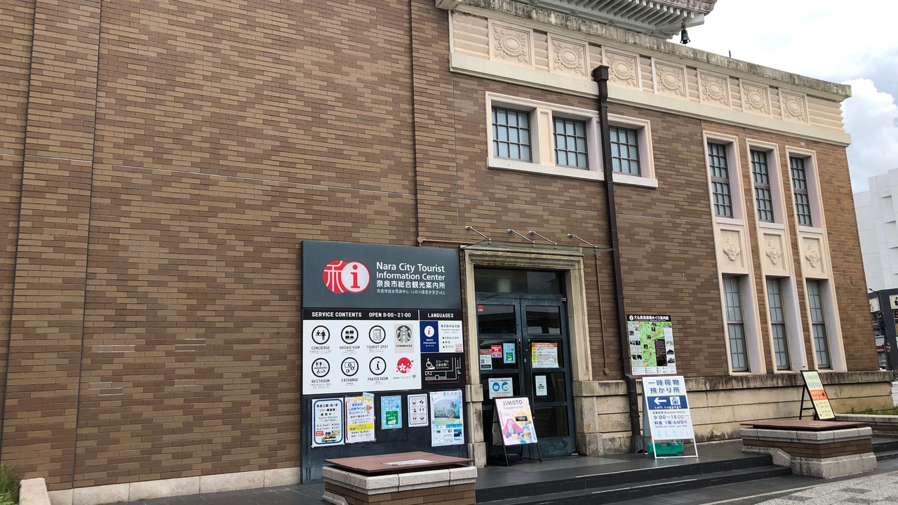 JR奈良駅前にある観光案内所です。もとは、JR奈良駅の駅舎でした。古都・奈良に合った和風建築です。館内には、有人の観光案内カウンター、観光パンフレットコーナー、スターバックスコーヒーなどがあります。奈良のゆるキャラグッズも、多数売られていました。