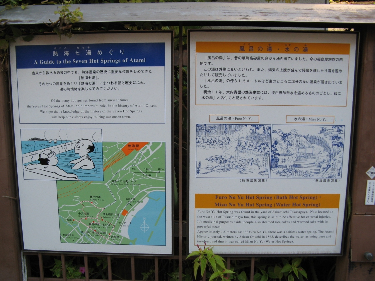 JR熱海駅から歩いて20分ほど、熱海七湯と呼ばれる古くからの源泉の一つです。道路沿いの一角に、アロエの生い茂った場所に小さな泉水の様なものがあり、そのすぐそばに「風呂の湯 水の湯」と書かれた石碑がありました。湯気は立っていなく、水温はぬるかったです。
