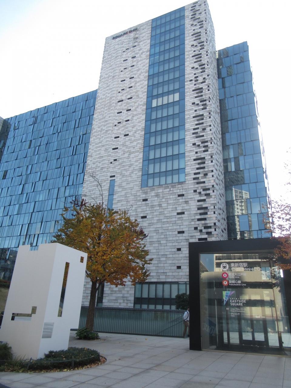高いタワーが目立ち、一風変わった外壁の造りのオフィスビル、ショッピングビルです。