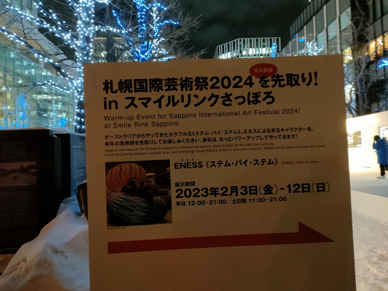 近年、さっぽろ雪まつりでは、大通公園1、2丁目辺りにスケートリンクができていましたが、コロナ禍で3年ぶりの開催となった2023年は、大通公園にはカーリング会場ができていて、スケートリンクは同期間、北3条広場アカプラにできました。