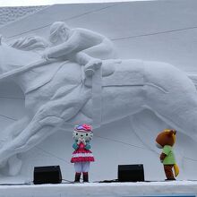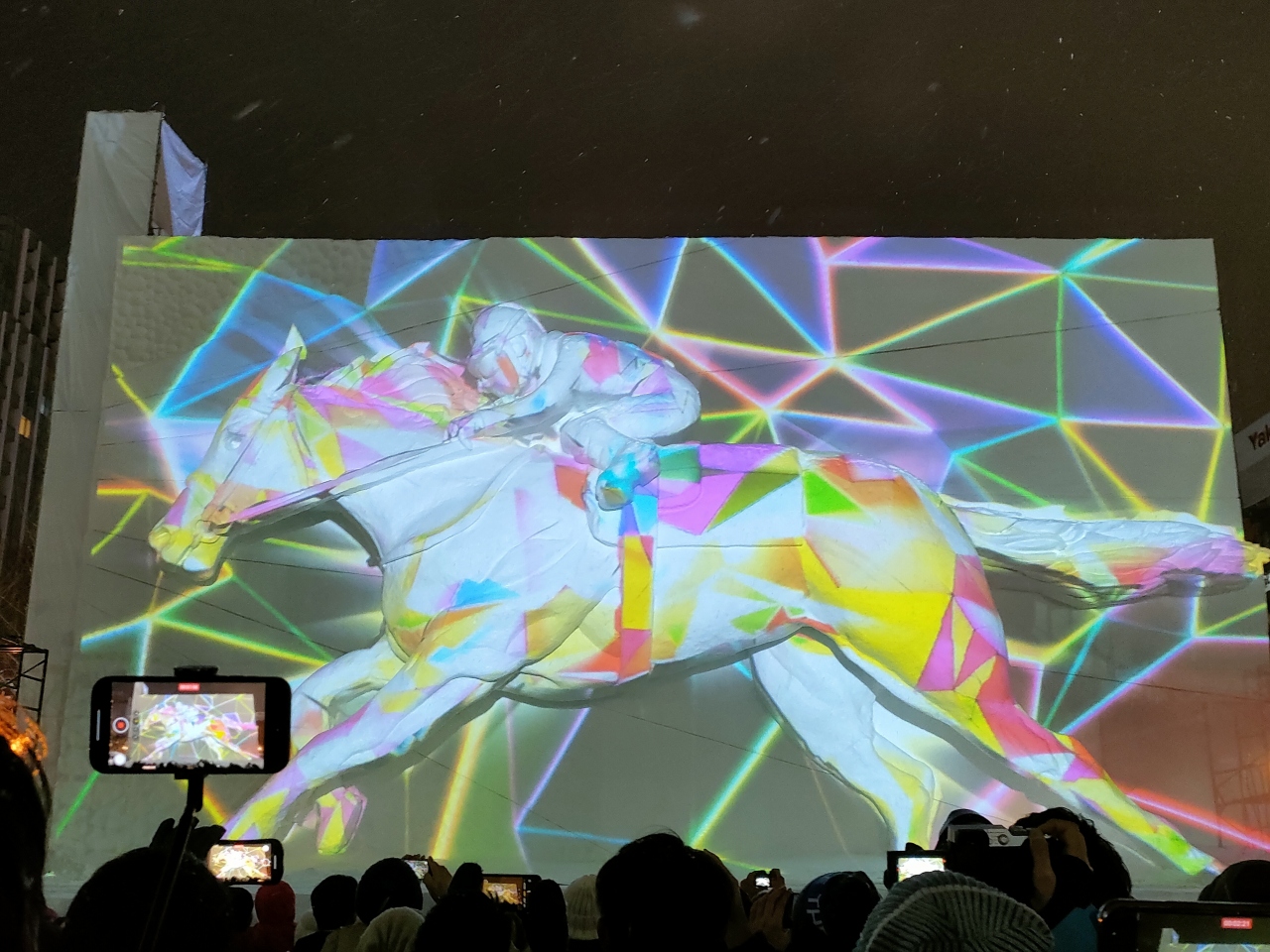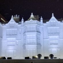 5丁目の競馬像、8丁目の豊平館で、大雪像に迫力のプロジェクションマッピングが楽しめるようになっている。